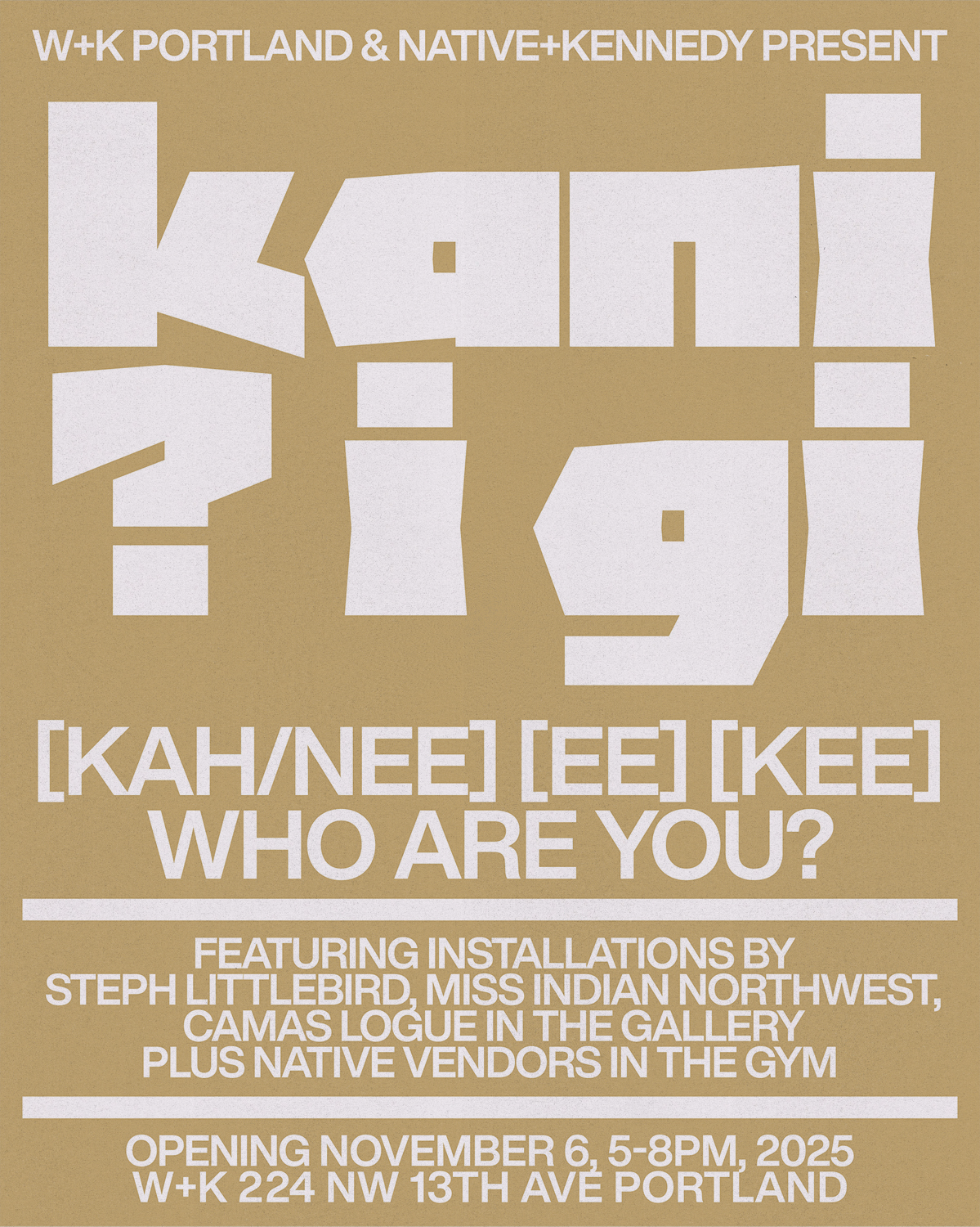 Wieden+Kennedy is proud to present the gallery opening featuring installations by renowned artists Steph Littlebird, Miss Indian Northwest, Camas Logue, and other talented local artists and vendors. We will also be featuring tattoos by Tattoo 34 and sounds by Kunu. This unique gallery opening will also host our first Native Market, providing a wonderful opportunity to support Native artists. Attendees will have the chance to explore and purchase beautiful, authentic goods directly from the creators.
