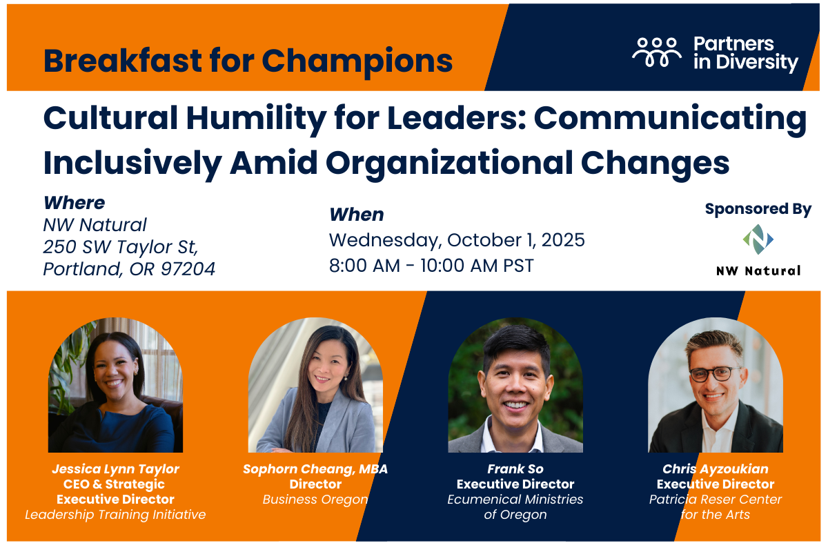 This Breakfast for Champions session is eligible for SHRM credits. Please email Amy Vaught at avaught@partnersindiversity.org for certification.